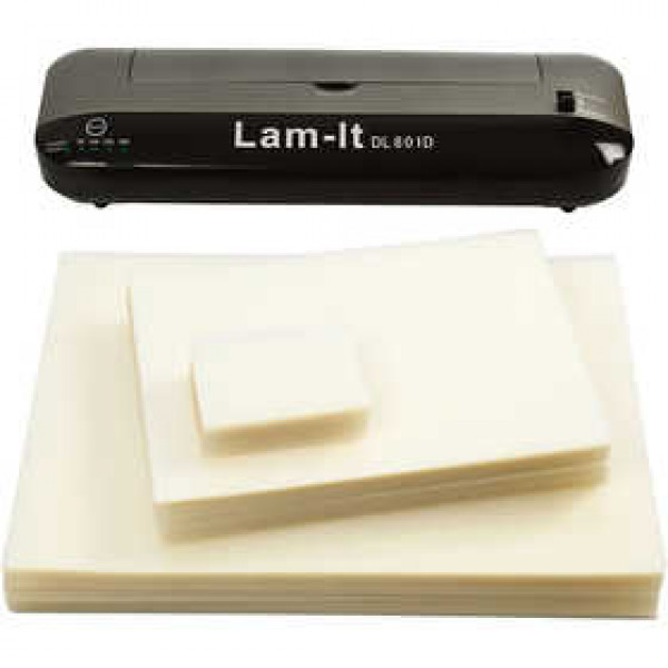 Inhoud: 1 laminator, 200x A3, 200x A4 en 100x A7 lamineerhoezen.