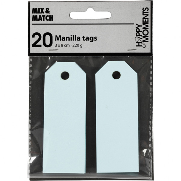 Manila Tags, size 3x8 cm, 220 g, 20 pcs, light blue [HOB-234018]
