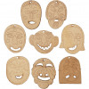 Kleine maskers in 8 verschillende designs met uitsneden en details aan de voorkant om in te schilderen. Bovendien met ophangoog.