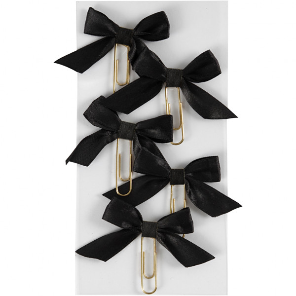Gold plated metal clip with on-band bow of satin ribbon. Used as decoration and effect on cards, invitations, gifts, scrapbooking, planner and much more.