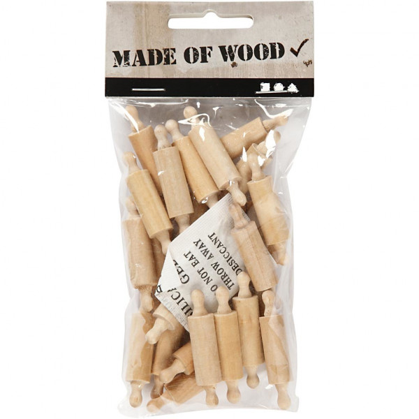 Mini deegrol, l: 45 mm, d: 10 mm, berkehout, 25stuks [HOB-564620]