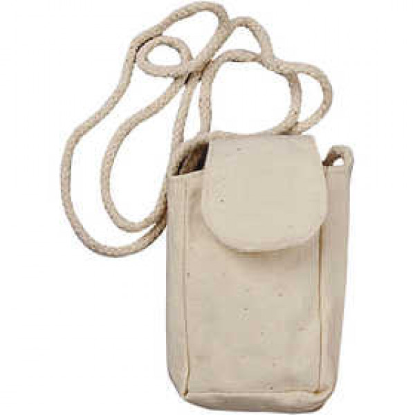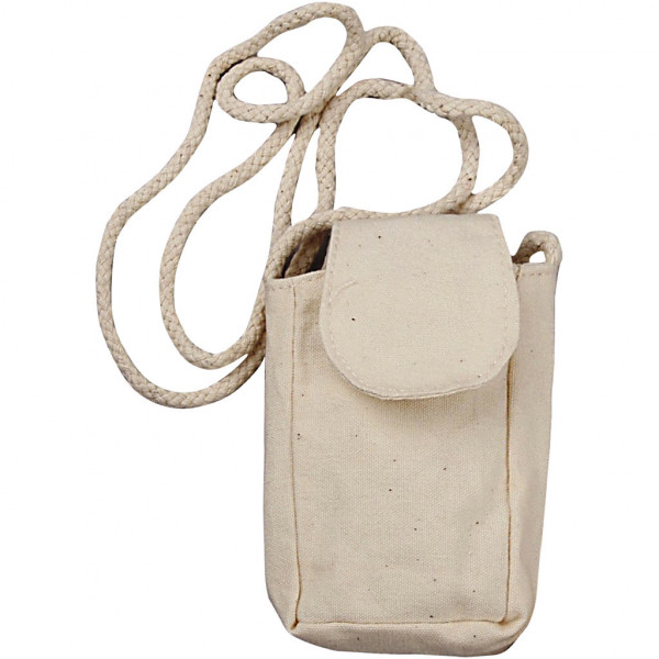 Praktische tas voor mobiele telefoon - gemaakt van 100% katoen - met klittebandsluiting en katoenen koord.