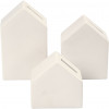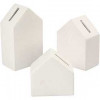 Spaarpotten, huizen, h: 9+12+15 cm, dikte 5,3 cm, wit, 3stuks [HOB-50548]