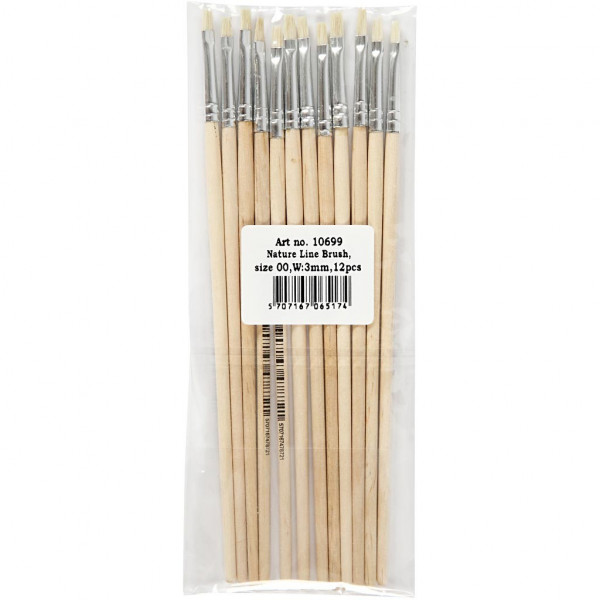 Nature Line kwasten,  00 , b: 3 mm, korte steel, 12stuks [HOB-10699]