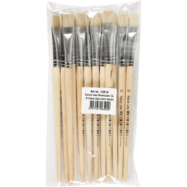 Nature Line kwasten,  12 , b: 12 mm, korte steel, 12stuks [HOB-10612]