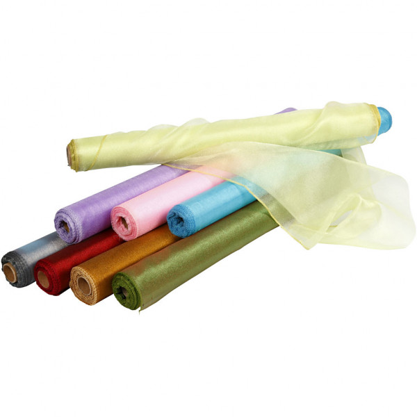 Organza stof, b: 50 cm, diverse kleuren, glans, 8x10m [HOB-44660]