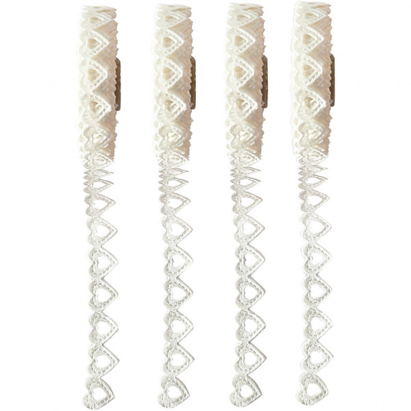 Paper Lace Borders, b: 6 mm, wit, Hart patroon, 4x2m [HOB-28029]