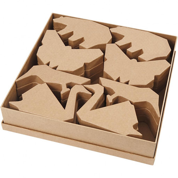 Assortiment met verschillende dieren van bruin papier-maché.