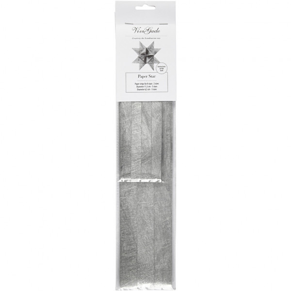 Papieren stroken voor het vlechten van sterren in 2 maten in een design van Vivi Gade. Paier is bekleed met een dunne laag van zijde zowel aan de voor- als achterkant. De diameter geeft de afmeting van de kant-en-klare ster aan. Inclusief instructie.