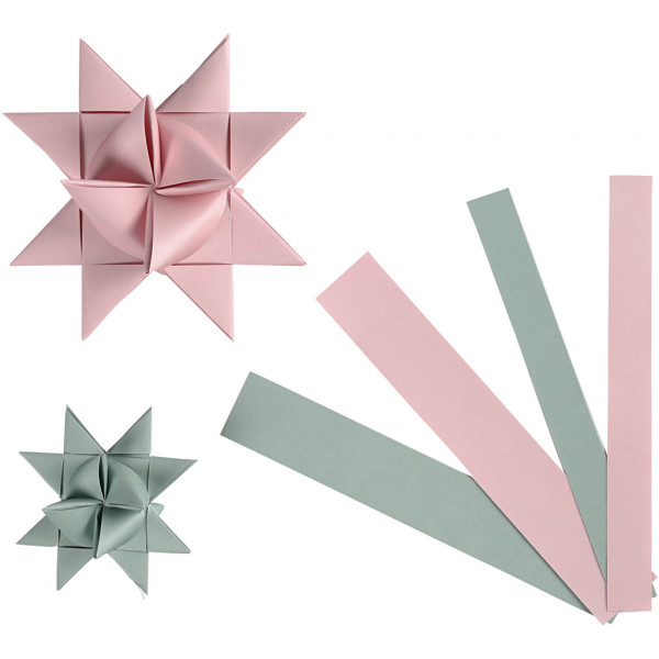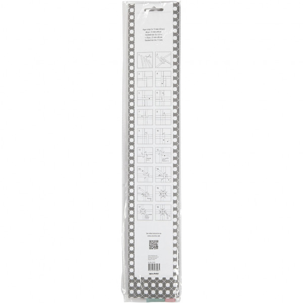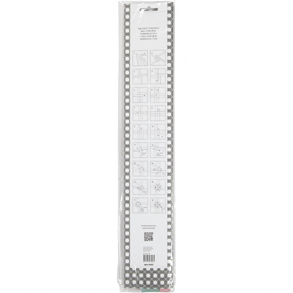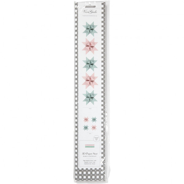 Dubbelzijdig bedrukte papieren stroken van Vivi Gade Design. De diameter geeft de uiteindelijke grootte van de ster aan. Inclusief instructie.