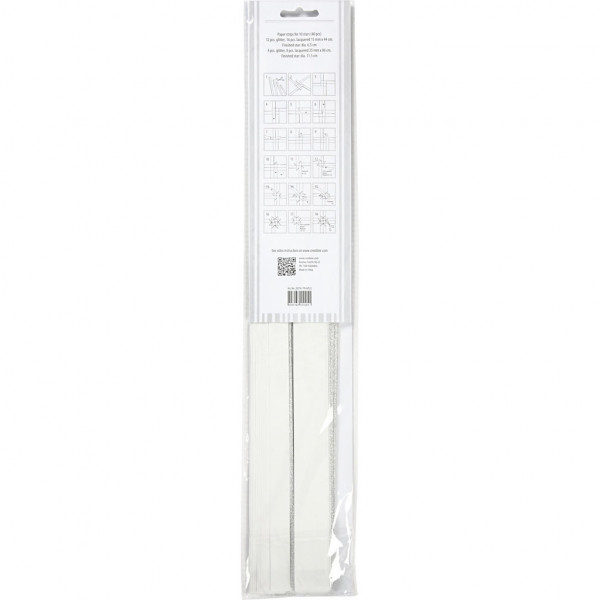 Papieren vlechtstroken, b: 15+25 mm, d: 6,5+11,5 cm, wit, glitter en glanzend, 40stroken, l: 44+78 cm [HOB-20774]