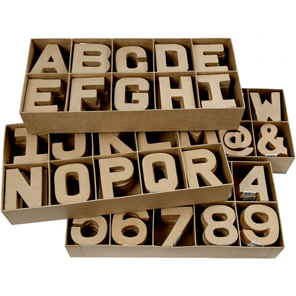 Cijfers & letters van papier-maché, klein, h: 10 cm, dikte 1,7 cm, 160stuks [HOB-26667]
