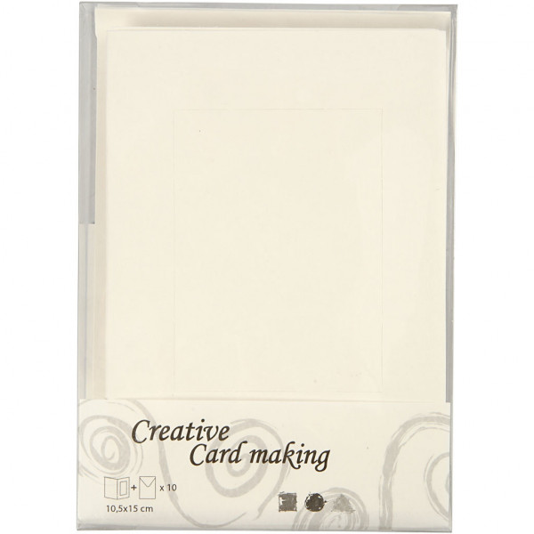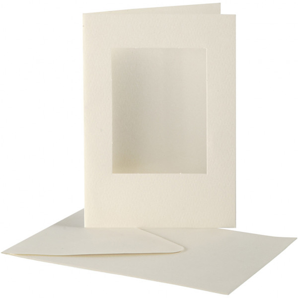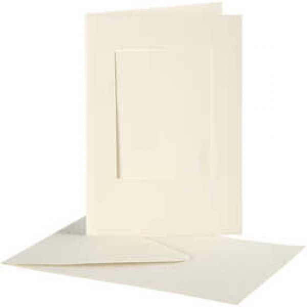 Passepartout Kaarten, afmeting kaart 10,5x15 cm, gatgrootte 6,5x8,8 cm, off-white, rechthoek, 10sets [HOB-23720]