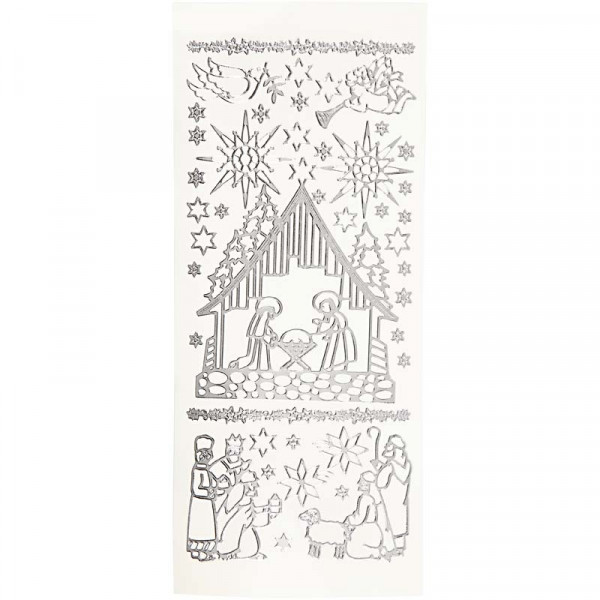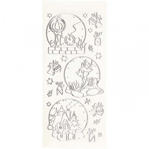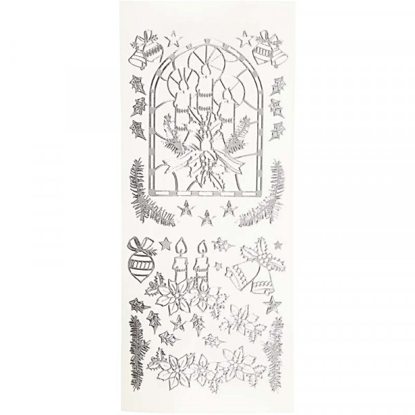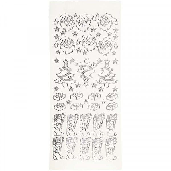 Stickervellen, vel 10x23 cm, zilver, Kerst, 20div vellen [HOB-28031]