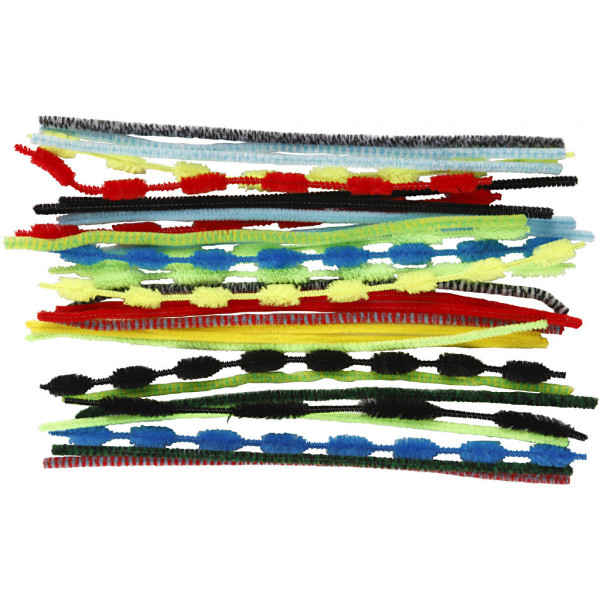 Chenille, dikte 5-12 mm, l: 30 cm, diverse kleuren, 30div [HOB-51667]