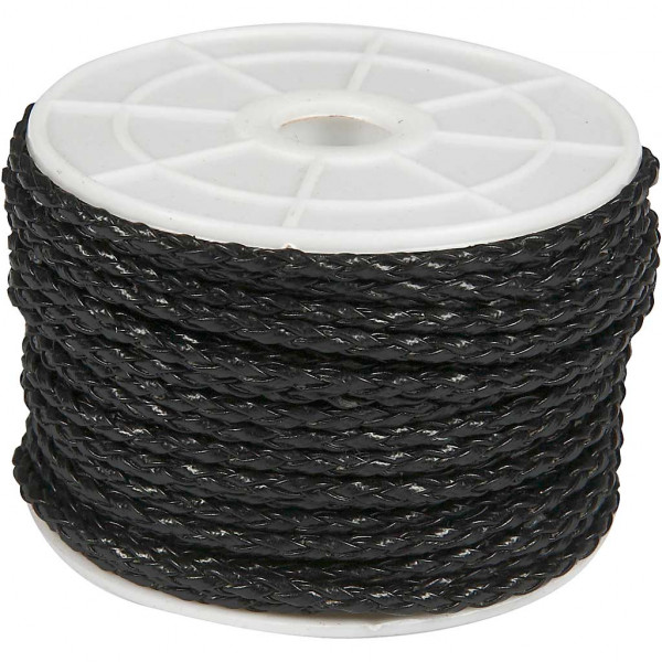 Gevlochten koord, 3 mm, zwart, 25m [HOB-51556]