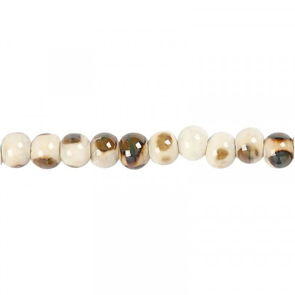Keramiek kralen, d: 10 mm, gatgrootte 2 mm, off-white, rond, 24stuks [HOB-69957]