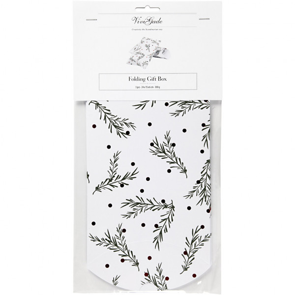 Cadeaudoosje, tak met kerstballen, afm 23,9x15x6 cm, 300 gr, groen, wit, metallic rood, 3stuks [HOB-25357]