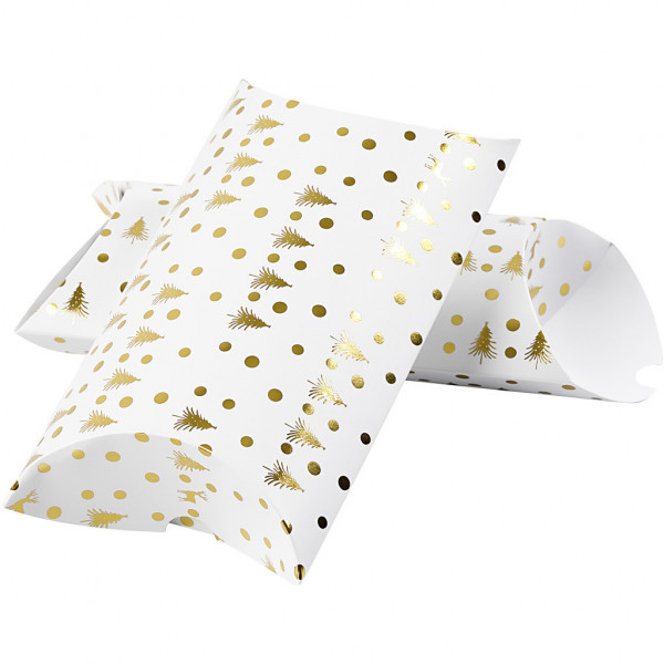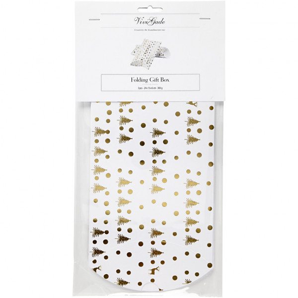 Cadeaudoosje, kerstboom met hert, afm 23,9x15x6 cm, 300 gr, wit, goud, 3stuks [HOB-25360]