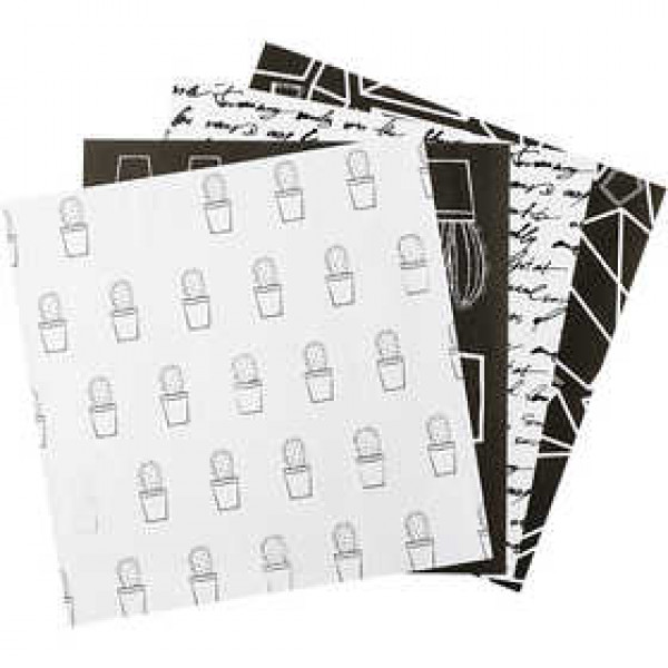 Set met 4 verschillende designs, waarvan 2 designs met zilverkleurig folie.