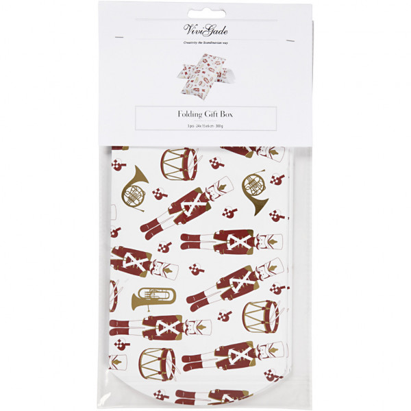 Cadeaudoosje, notenkraker, afm 23,9x15x6 cm, 300 gr, wit, goud, rood, 3stuks [HOB-26298]