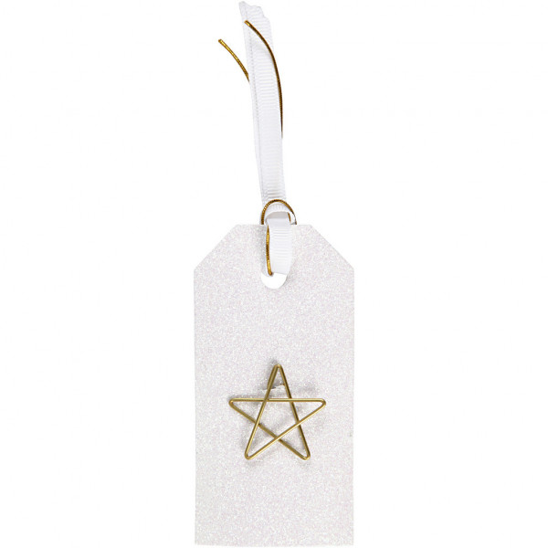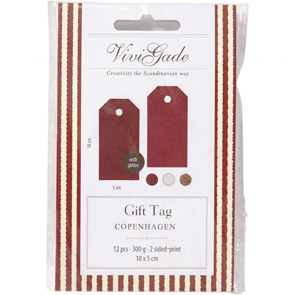 Cadeaulabels, afm 5x10 cm, 300 gr, wit, goud, rood, 12stuks [HOB-27972]