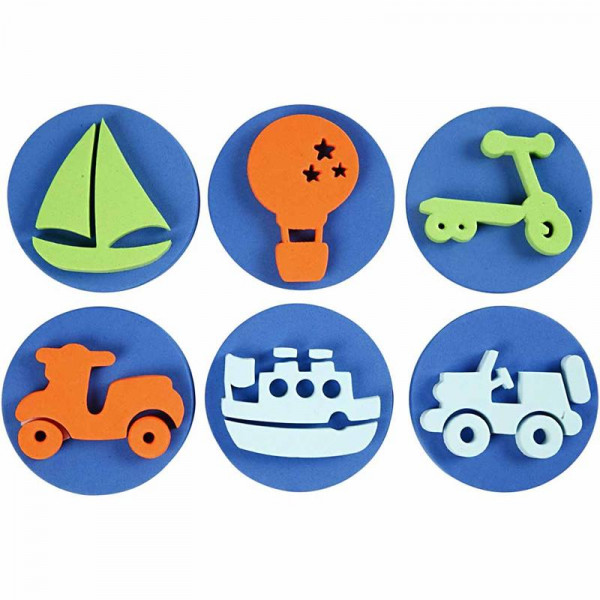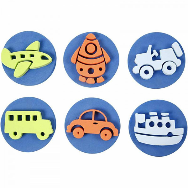 Foam stempels, d: 7,5 cm, dikte 2,5 cm, transport, 6div [HOB-28556]