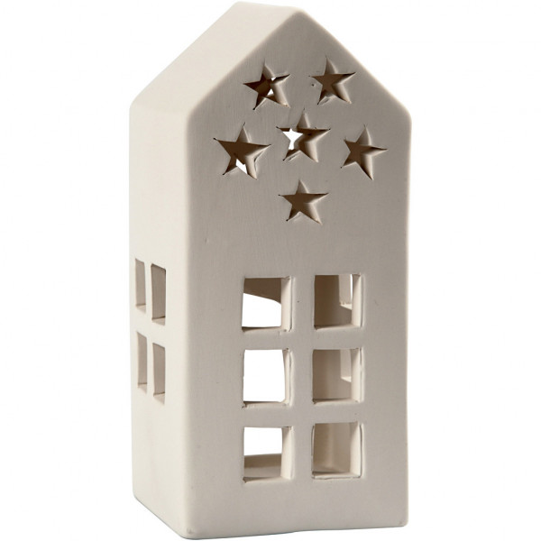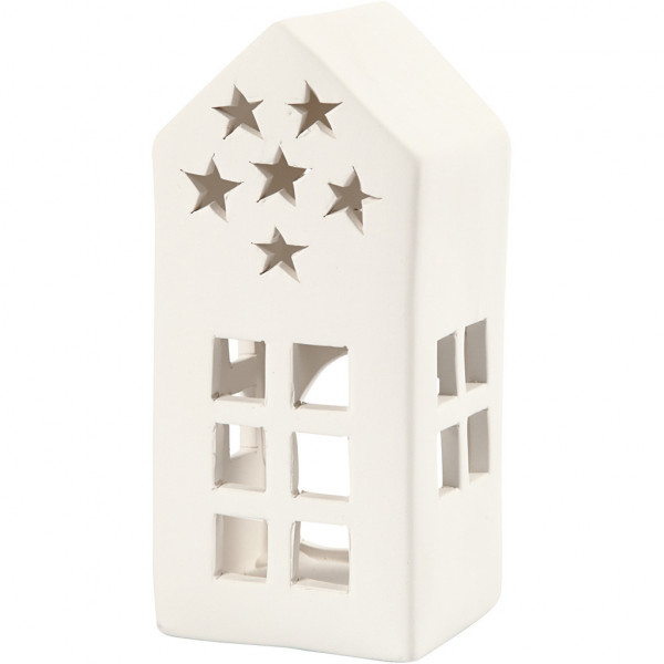 Waxinelichthouder, huis, afm 7x7 cm, h: 16 cm, wit, 8stuks [HOB-50497]