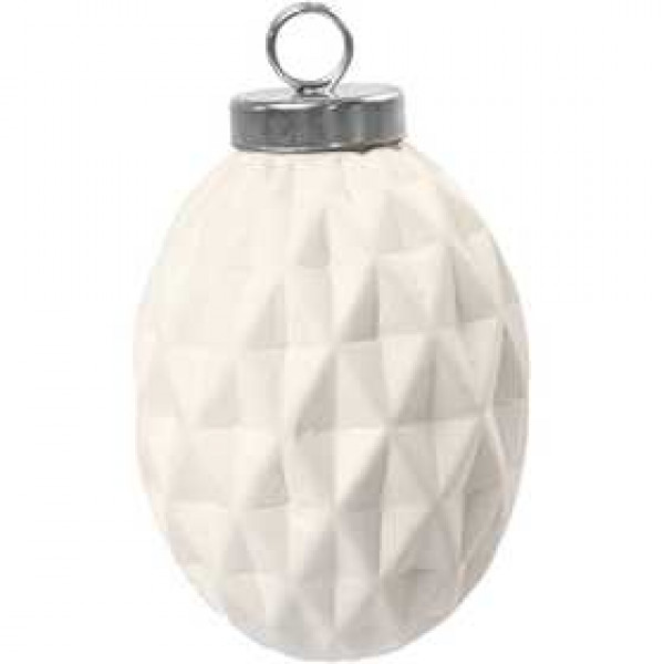 Terracotta ornamenten, ovaal, d: 5 cm, h: 7 cm, wit, 6stuks [HOB-50565]