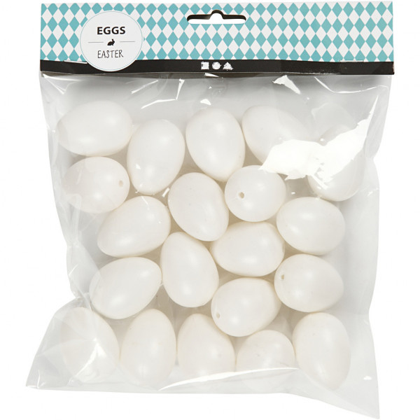 Ei, plastic, h: 4 cm, gatgrootte 2 mm, wit, 20stuks [HOB-510301]