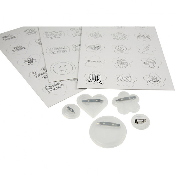 Inhoud: 100 badges en 60 voorgedrukte vellen.