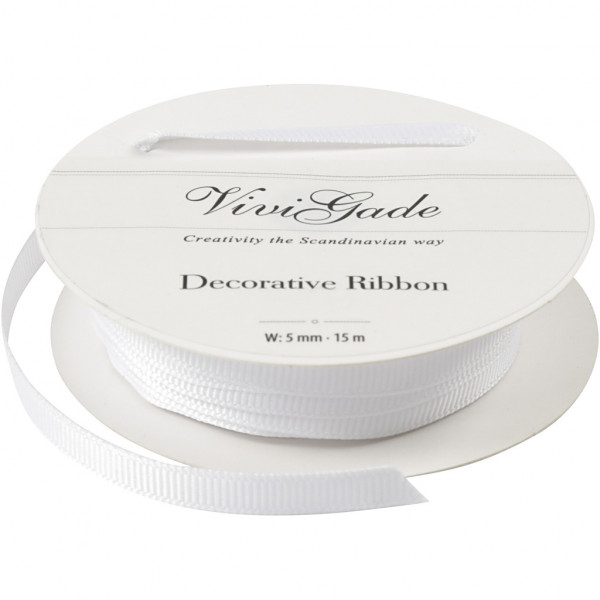 Decoratie lint, b: 5 mm, wit, 15m [HOB-52473]