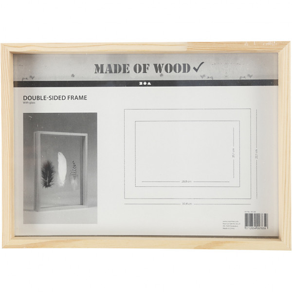 Dubbelzijdige lijst, A4, afm 22,1x30,8 cm, diepte 4,5 cm, grenen, 1stuk, binnenmaat 20,1x28,8 cm [HOB-56128]