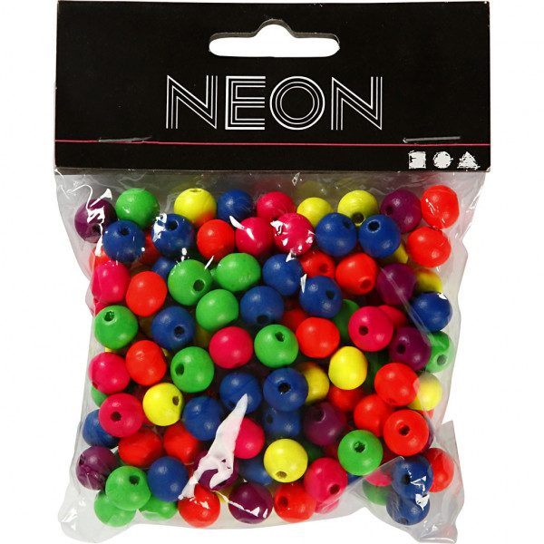 Neonmix, d: 10 mm, gatgrootte 2,5 mm, neonmix, china berry, 50gr, circa 150 stuk [HOB-566950]