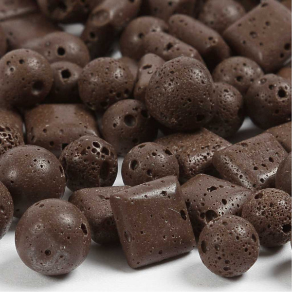 Lava kralen , d: 8-18 mm, gatgrootte 1-1,2 mm, bruin, 800div [HOB-69417]