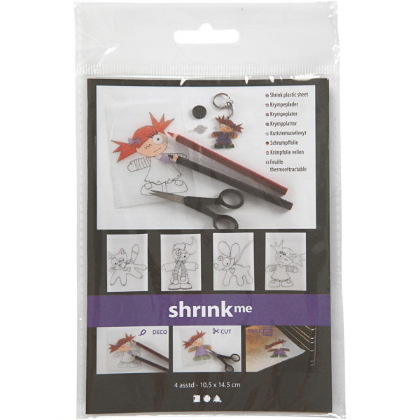 Krimpfolie met motieven, vel 10,5x14,5 cm, mat transparant, kinderen en dieren, 4vellen [HOB-79073]