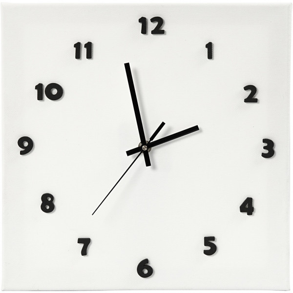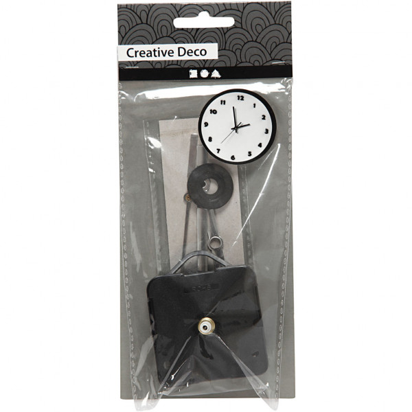 Kleine wijzer 8 cm, grote wijzer 11 cm, secondewijzer 12 cm. Afmetingen uurwerk zijn 5,5x5,5x1,5 cm.