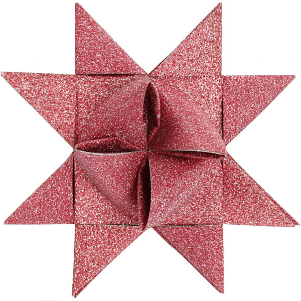 Papieren vlechtstroken, b: 15+25 mm, d: 6,5+11,5 cm, rood, glitter en glanzend, 40stroken, l: 44+78 cm [HOB-20775]