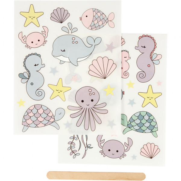 Transfer labels for textiles and leather paper. The motives are rubbed on the subject with the supplied tool. Withstand mild wash.