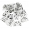 Krimpfolievellen met voorgedrukt design op zowel mat als glanzend oppervlak. Na verhitting in een gewone oven krimpt het plastic tot wel 40% in afmeting. Kan gedecoreerd worden met potloden op de matte kant en op de glanzende met permanente stiften.