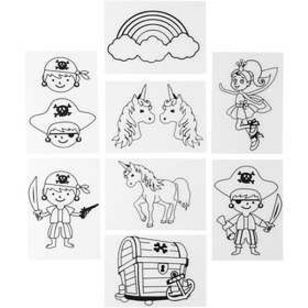 Krimpfolievellen met motieven, vel 10,5x14,5 cm, piraten en unicorn, 36vellen [HOB-79072]