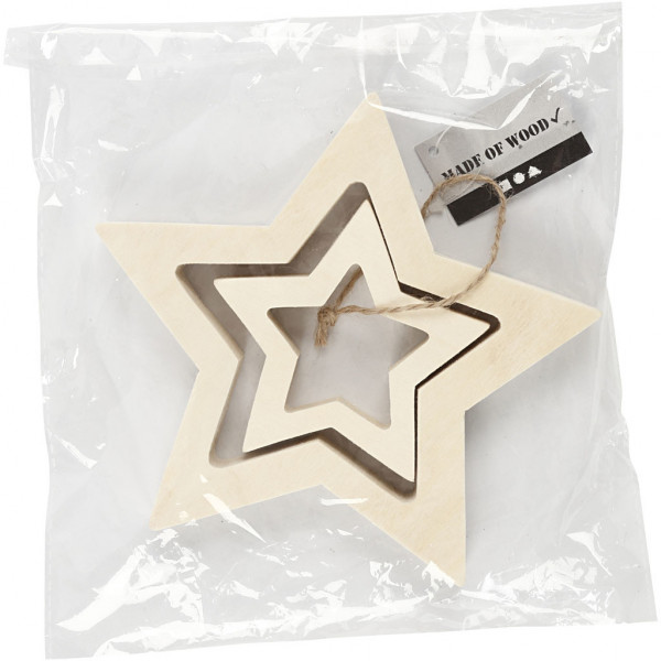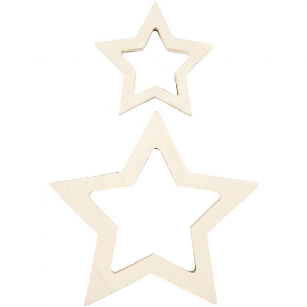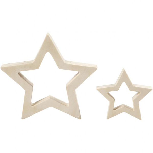 Set van twee sterren van hout in diverse maten.