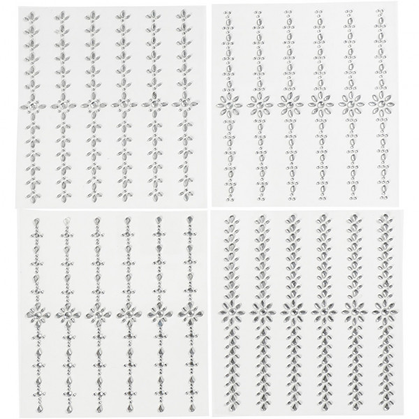 Strasstenen randen, l: 15 cm, b: 1-2 cm, zilver, 48div [HOB-28173]