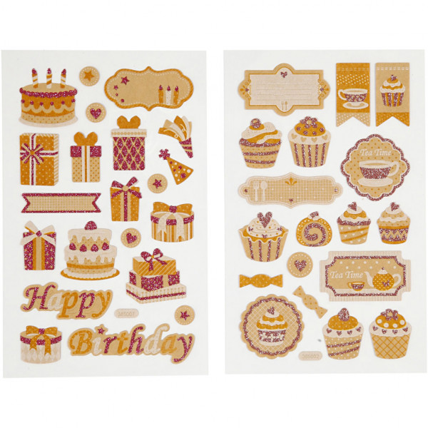 Stickers, vel 10x16 cm, verjaardag en cupcakes, 4vellen [HOB-29103]