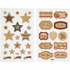 Zelfklevende motieven van mat papier en details met glitter.