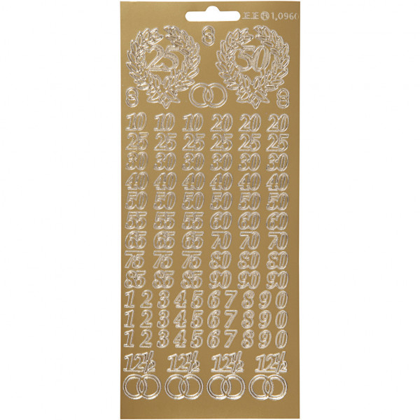 Stickers, vel 10x23 cm, goud, jubileum, 1vel [HOB-170216]
