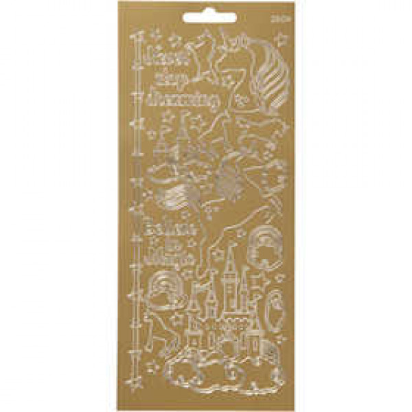 Stickers, vel 10x23 cm, goud, unicorn, 1vel [HOB-170258]