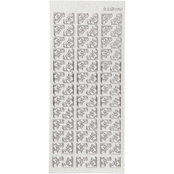 Stickers, vel 10x23 cm, perlemor sølv, zilver, hoeken, 1vel [HOB-170120]