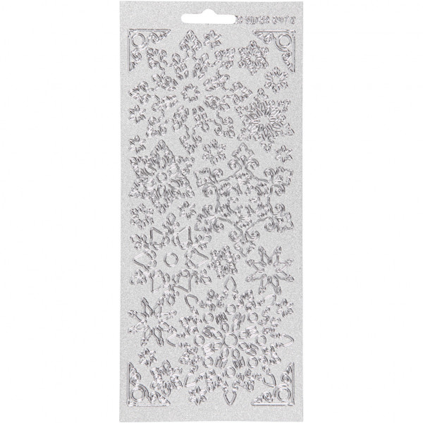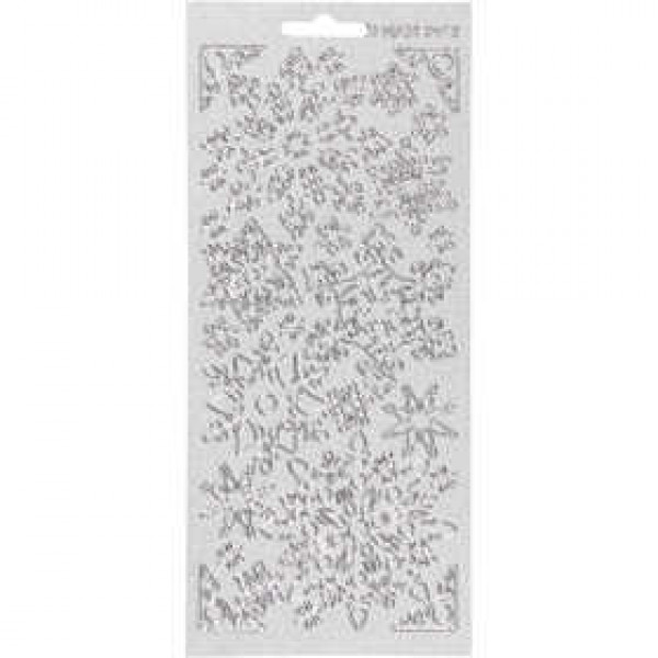 Stickers, vel 10x23 cm, perlemor sølv, zilver, sneeuwvlok, 1vel [HOB-170128]