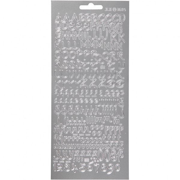 Stickers, vel 10x23 cm, zilver, alfabet, 1vel [HOB-170227]
